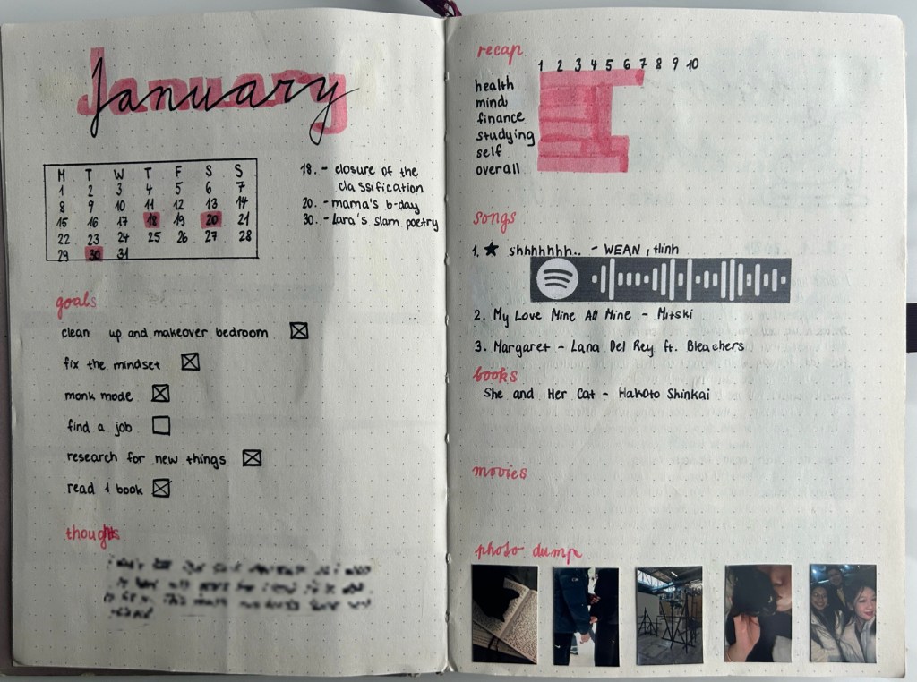 - Photos from the month to visually capture memories