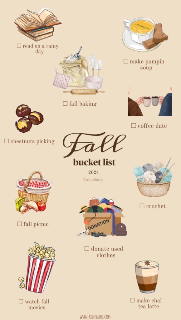 As the air turns crisp and the leaves begin to change, I’m inspired to make the most of this cozy and beautiful season. Fall has always been one of my favorite times of the year—the vibrant colors, the sweater weather, and the chance to embrace both outdoor adventures and indoor comforts. This year, I’ve decided to create a fall bucket list to fully experience all the magic this season offers. It’s a combination of simple pleasures, personal challenges, and moments that will bring warmth to my heart and soul.