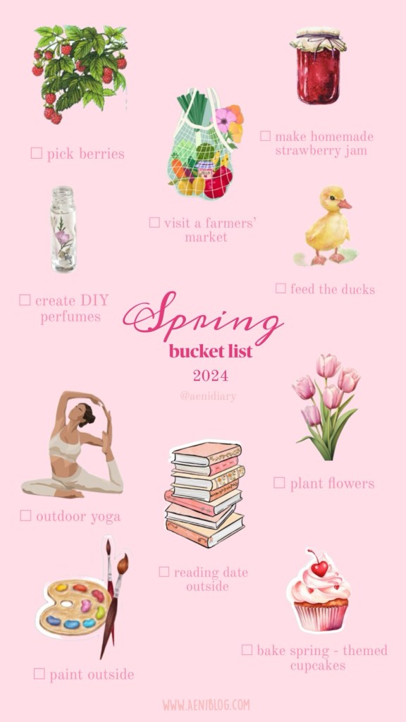 There’s something so refreshing about this time of year—nature wakes up, the streets feel more alive, and everything seems to carry a sense of renewal. To fully embrace the season, I’ve put together my Spring Bucket List, a collection of fun and meaningful activities I want to experience before summer arrives. From spending more time outdoors and trying new creative projects to simply slowing down and enjoying the little moments, this list is all about making the most of what spring has to offer.